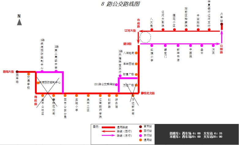 1.走向調(diào)整:“西車(chē)場(chǎng)”—渤海大街—平安路—中心街—“西市公安分局”—原線—“游泳館”—體育館路—渤海大街—市府路—“財(cái)富廣場(chǎng)”—原線—“火車(chē)站”。