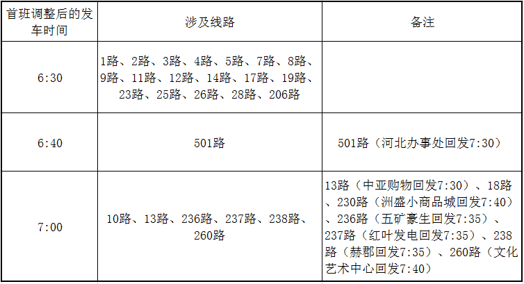 (一)2月15日、16日(三十、初一)首班延后發(fā)車、末班提前收車,具體明細(xì)見下表: